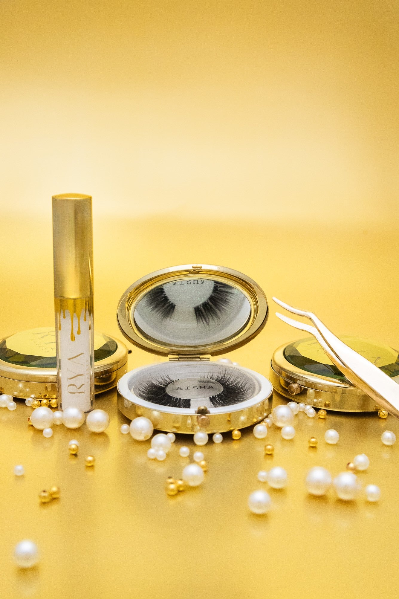 This curated set includes our invisible band strip lashes — Amara (natural), Fiza (soft glam), and Aisha (bold), designed to take you from everyday elegance to evening drama. Complete with our gold Lash Applicator and clear-drying Lash Adhesive, it's everything you need for effortless application and all-day wear.